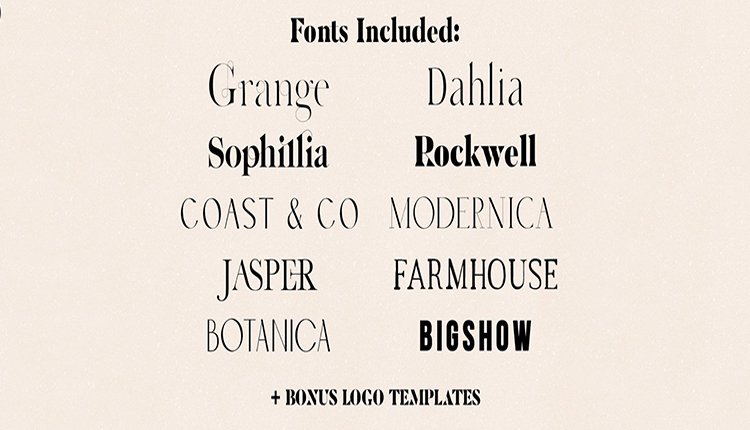 After the huge success of my first font bundle, I am happy to introduce the Modern Font Bundle Vol 2! Ten super unique fonts that are guaranteed to stand out while keeping those modern chic vibes. I'm sure you have seen huge font bundles that are full or boring generic fonts. THIS IS NOT ONE OF THEM! Fonts like Sophillia, Jasper & Grange are full of interesting ligatures that can't be found anywhere else while Modernica, Coast & Co and Botanica and modern takes on past era's. There are plenty of bonus logos thrown in also in EPS and AI formats. For more detailed descriptions of individual fonts, look below.