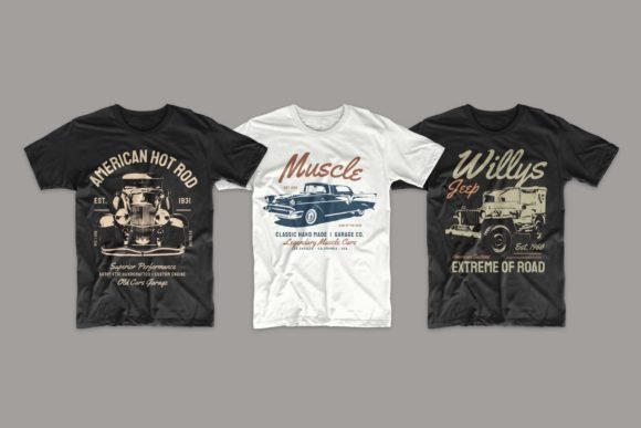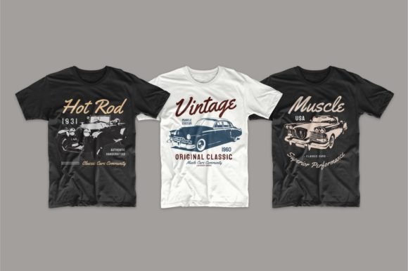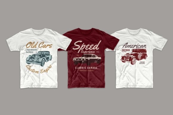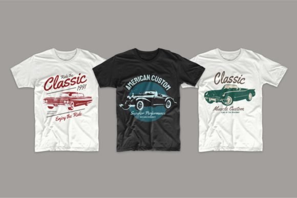 48 Editable Classic Cars T-shirt Design Bundle